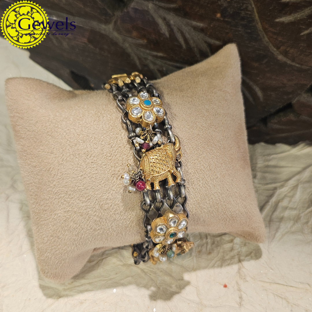 A harmonious blend of gold, intricate motifs, and vibrant gemstones, creating a timeless piece that sings elegance with every detail.
