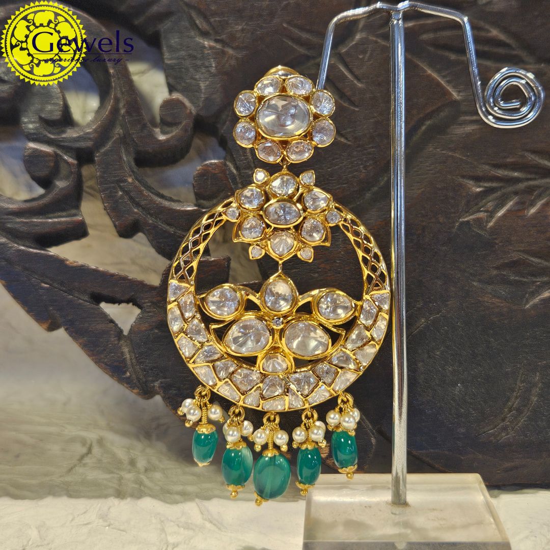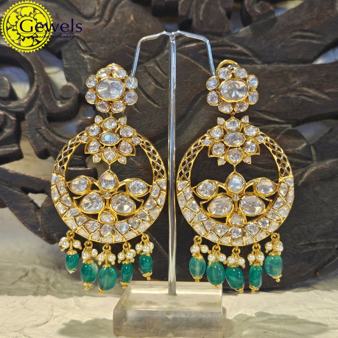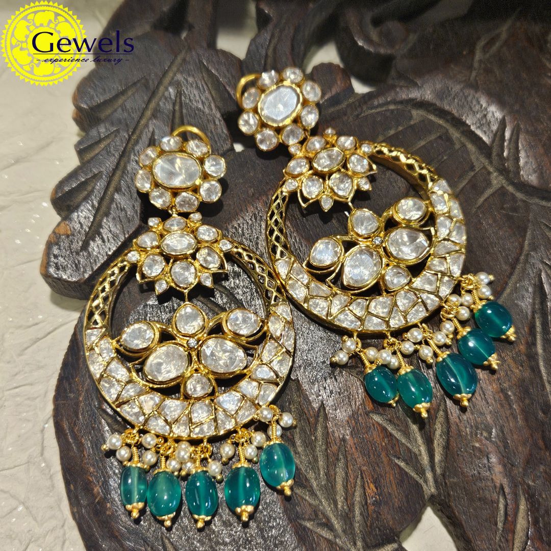 Gewels Kavya Chaandbaali: Gracefully poetic, these crescent-shaped Polki earrings embody timeless elegance with a modern twist.