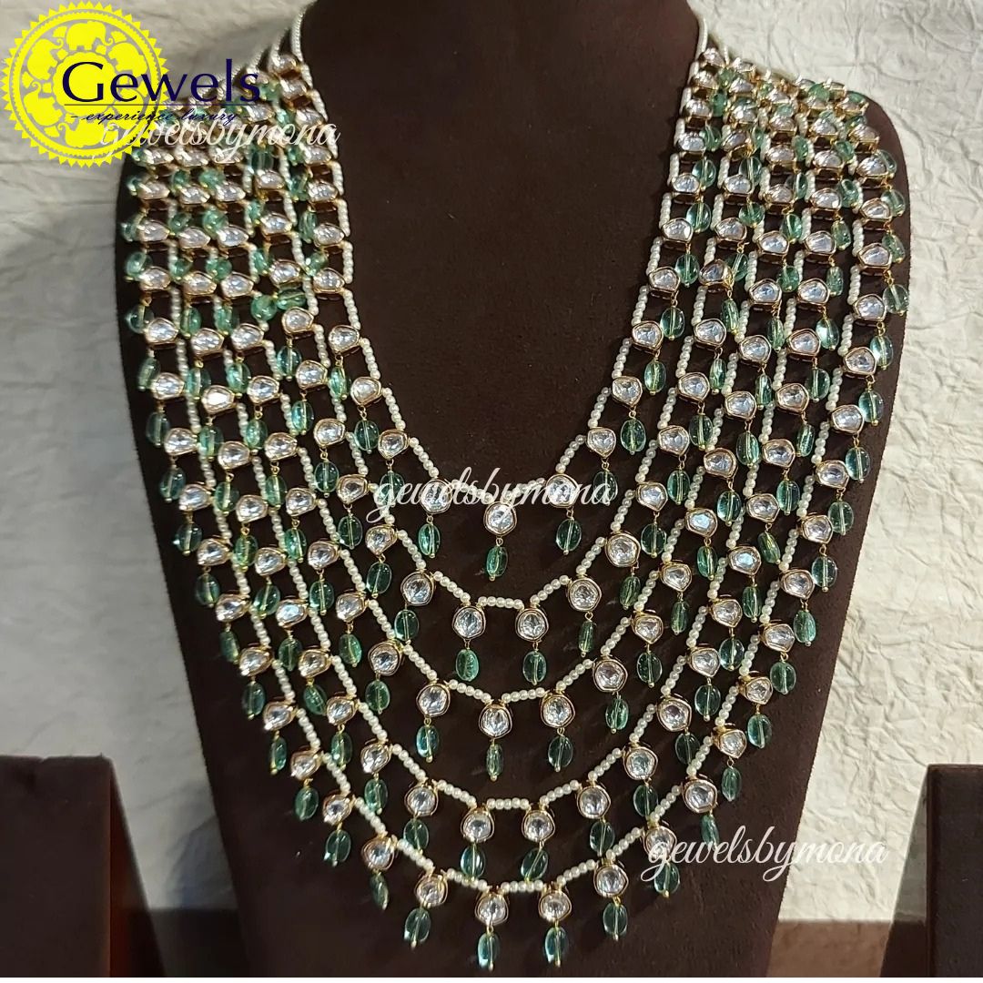 Enhanced with Moissanite Polki, semi precious green Aventurines & intricate pearls