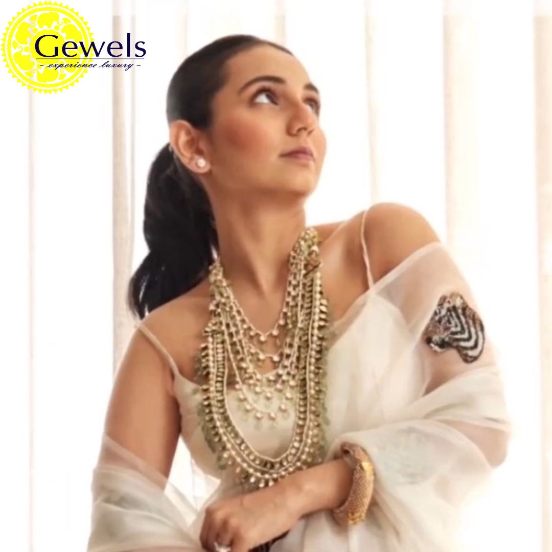 The Gewels Polki Paanch Lada is a luxurious necklace crafted with five strands of Polki diamonds by Gewels. This exquisite piece combines traditional design with contemporary style, adding opulence and sophistication to any attire.