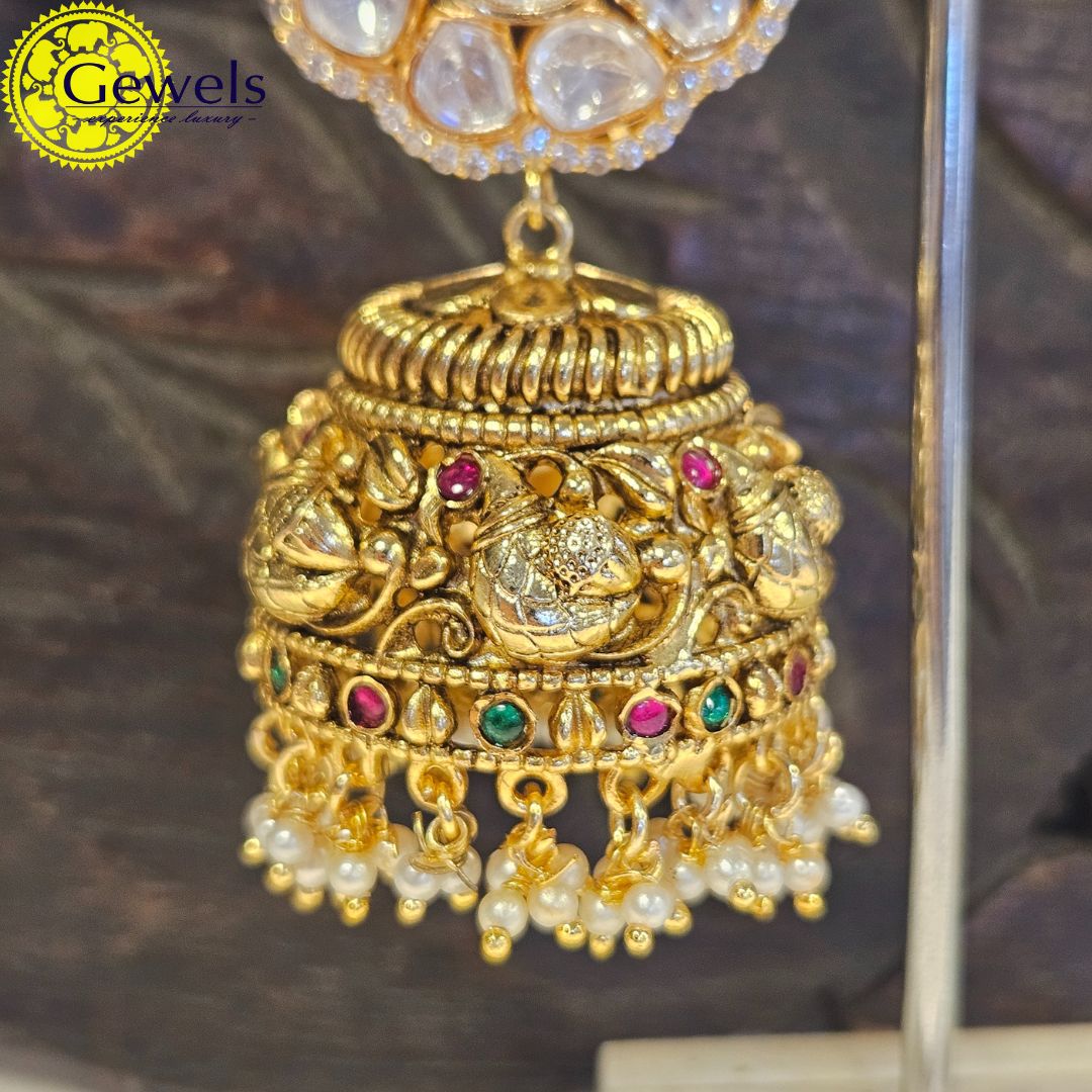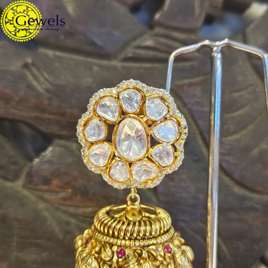 Gewels Polki Statement Necklace Set – A bold masterpiece of uncut polki, exuding regal charm and timeless grandeur.