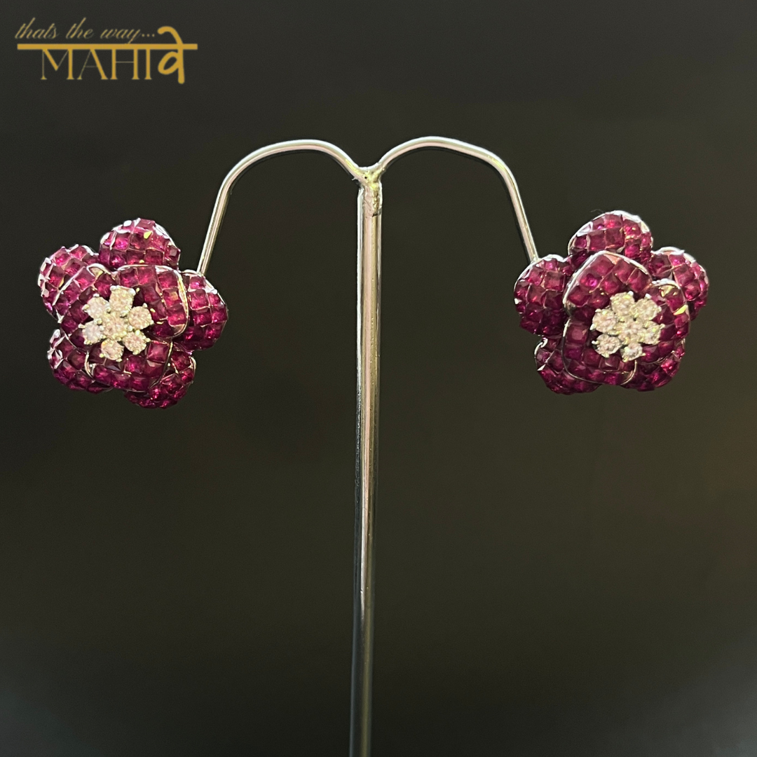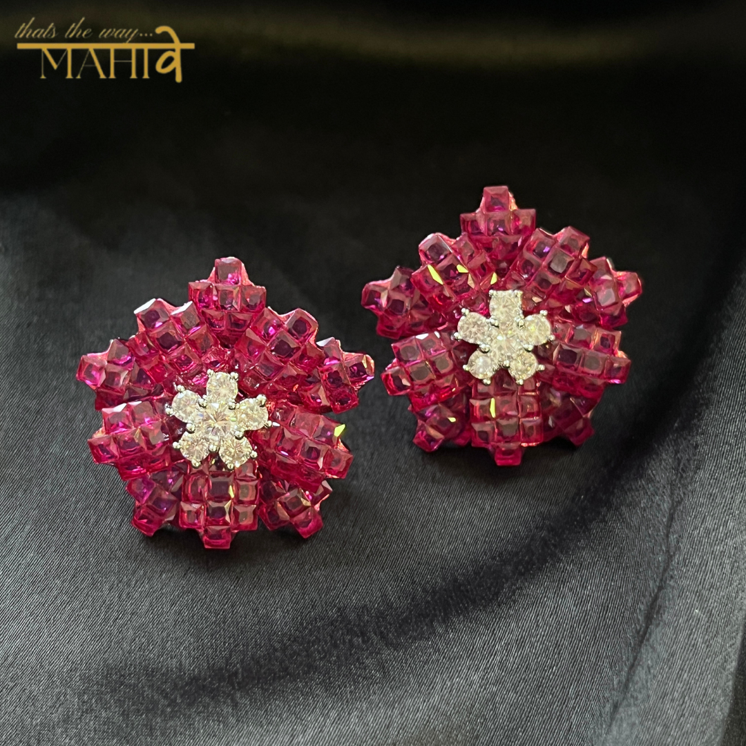A blooming burst of vibrant red crystals, these floral-inspired earrings exude elegance and a captivating allure.