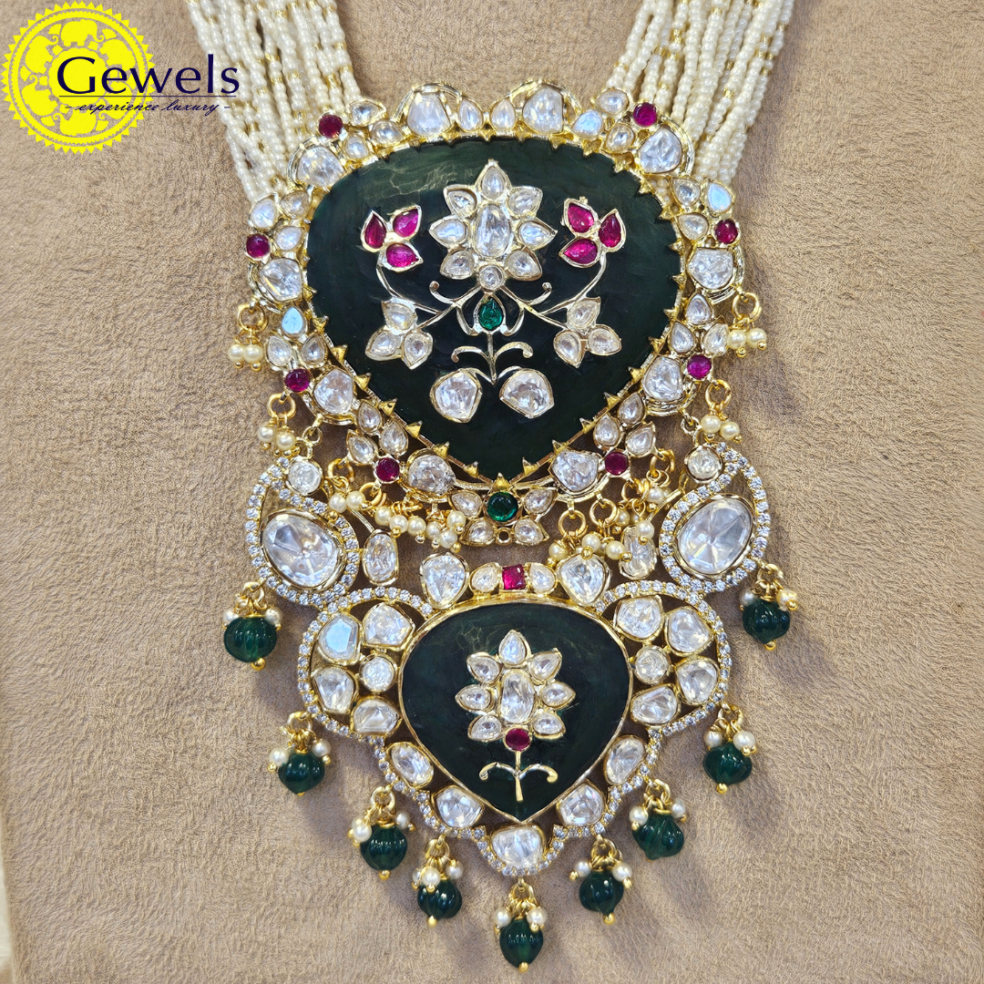 •Enhanced with semi precious pearls, emeralds and rubies.