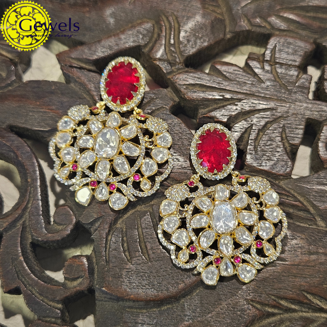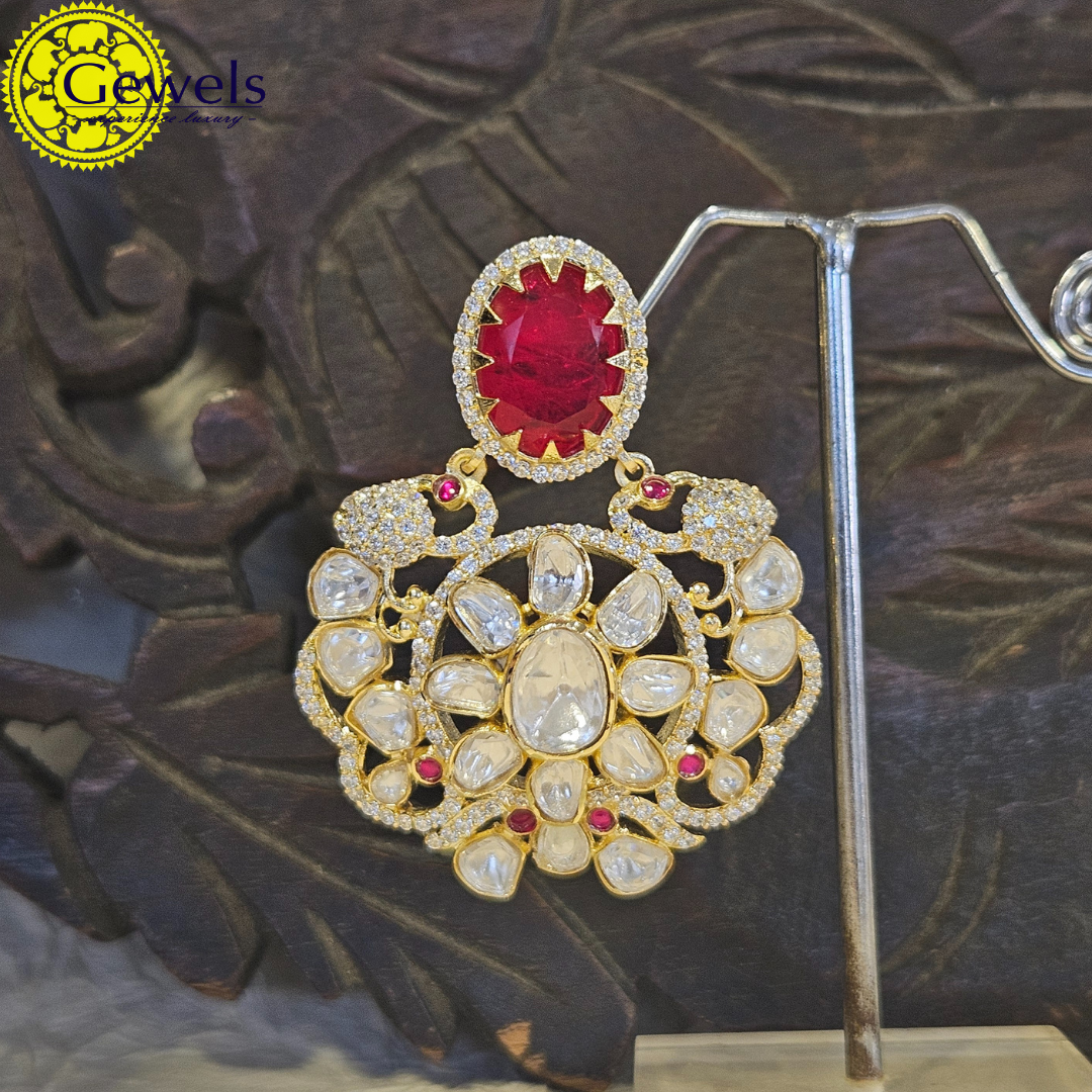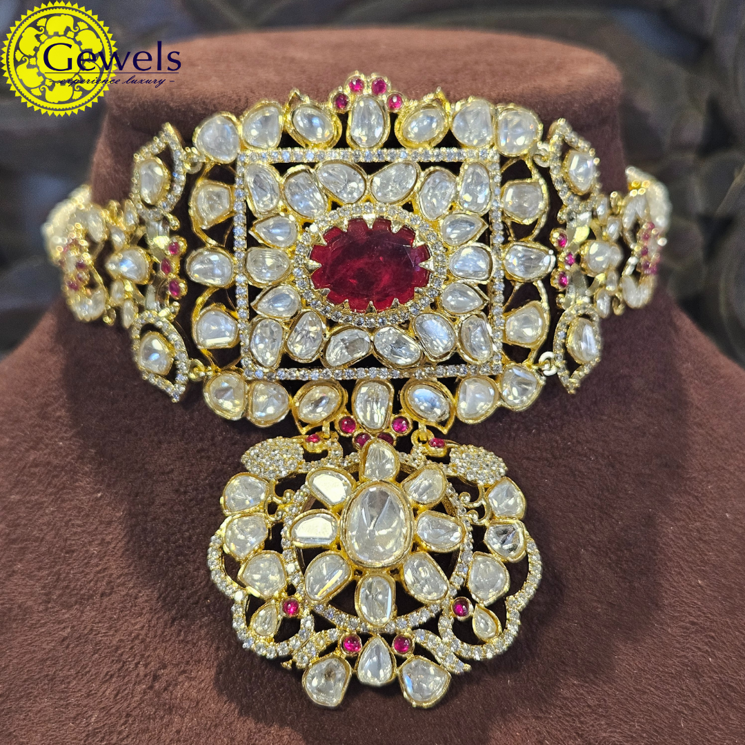 A captivating necklace set adorned with precious gems, inspired by the Hindu goddess Rukmini, known for her beauty and grace.