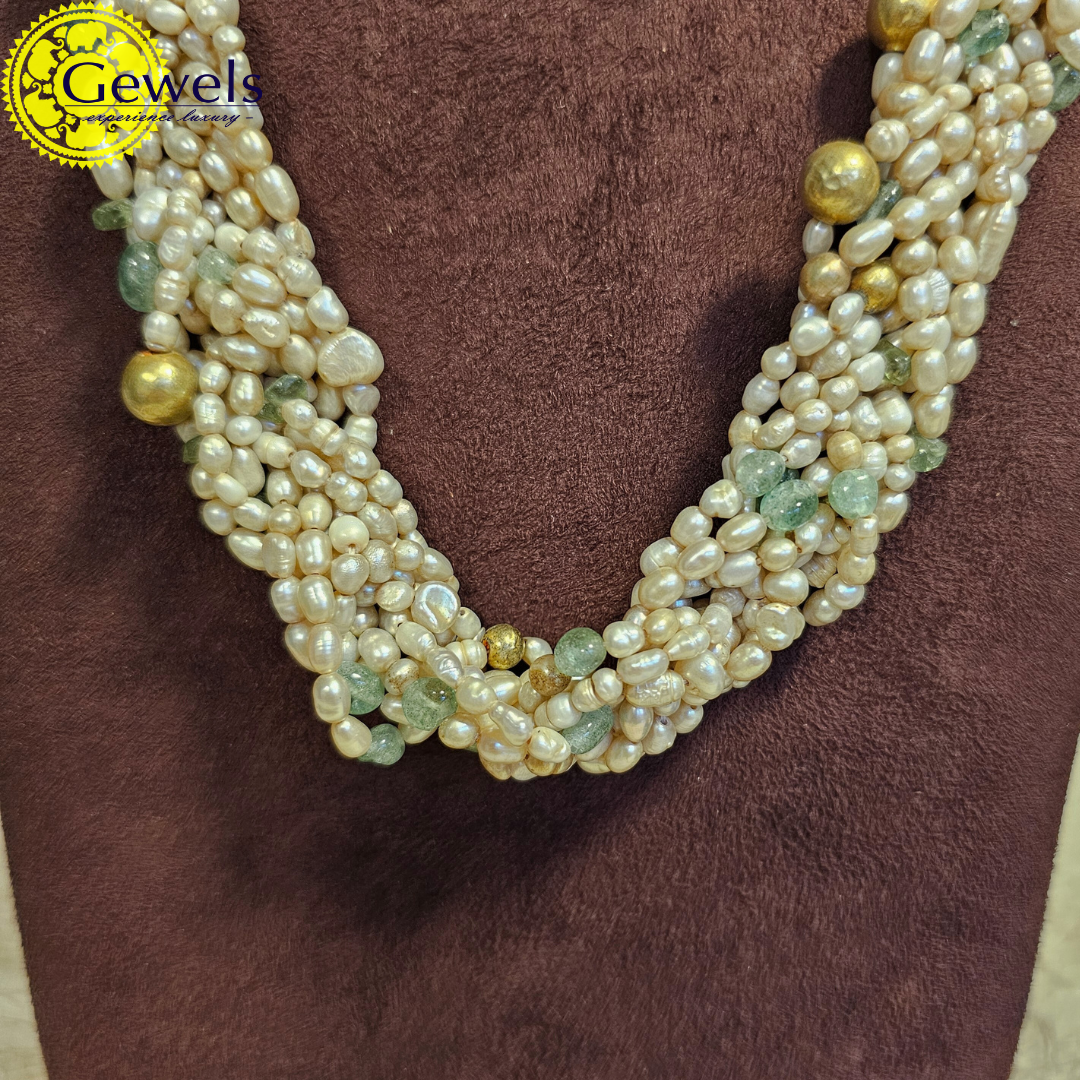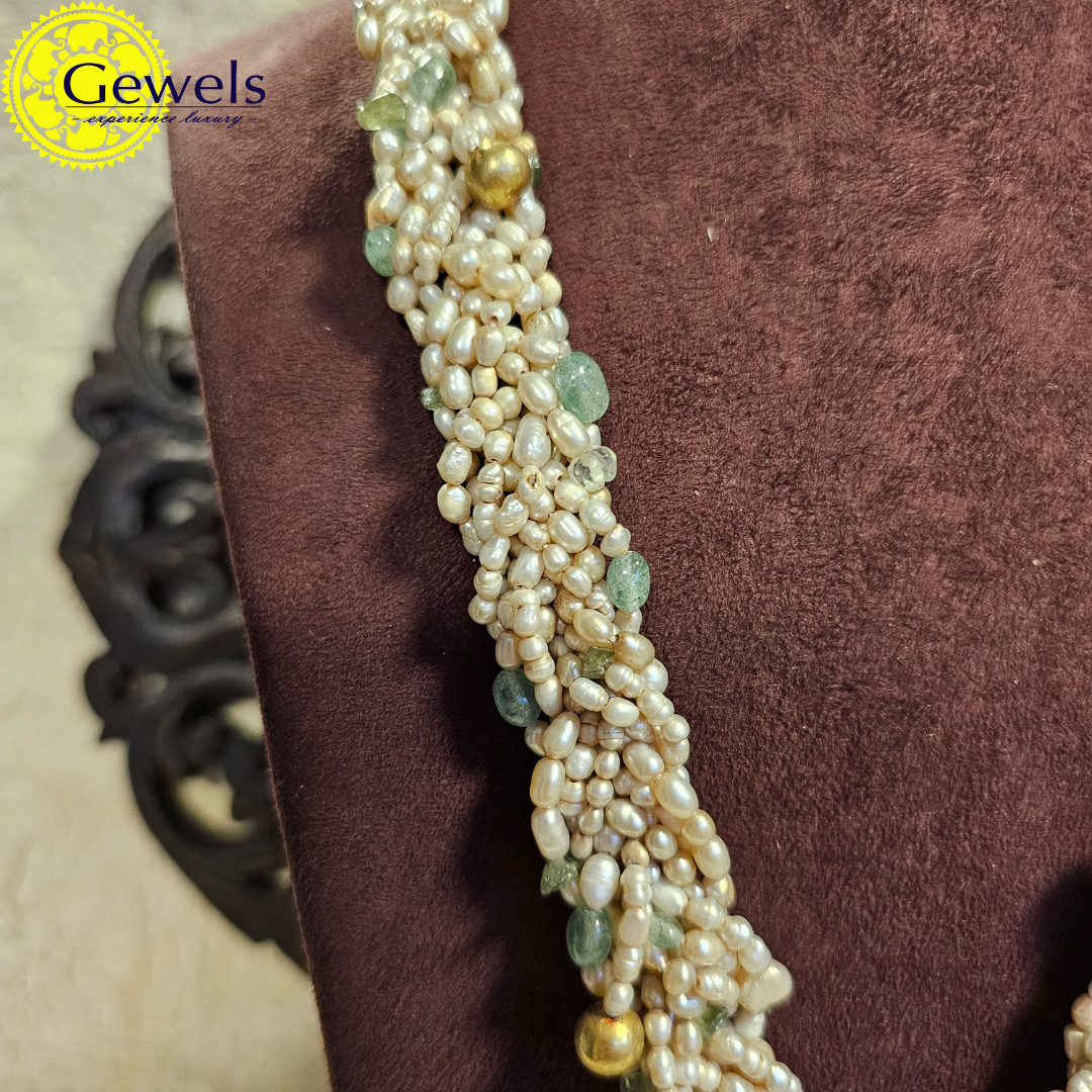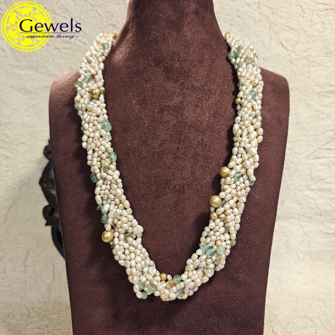 A stunning blend of lustrous pearls and delicate green beads, reminiscent of ocean treasures, perfect for adding an elegant touch to any ensemble.