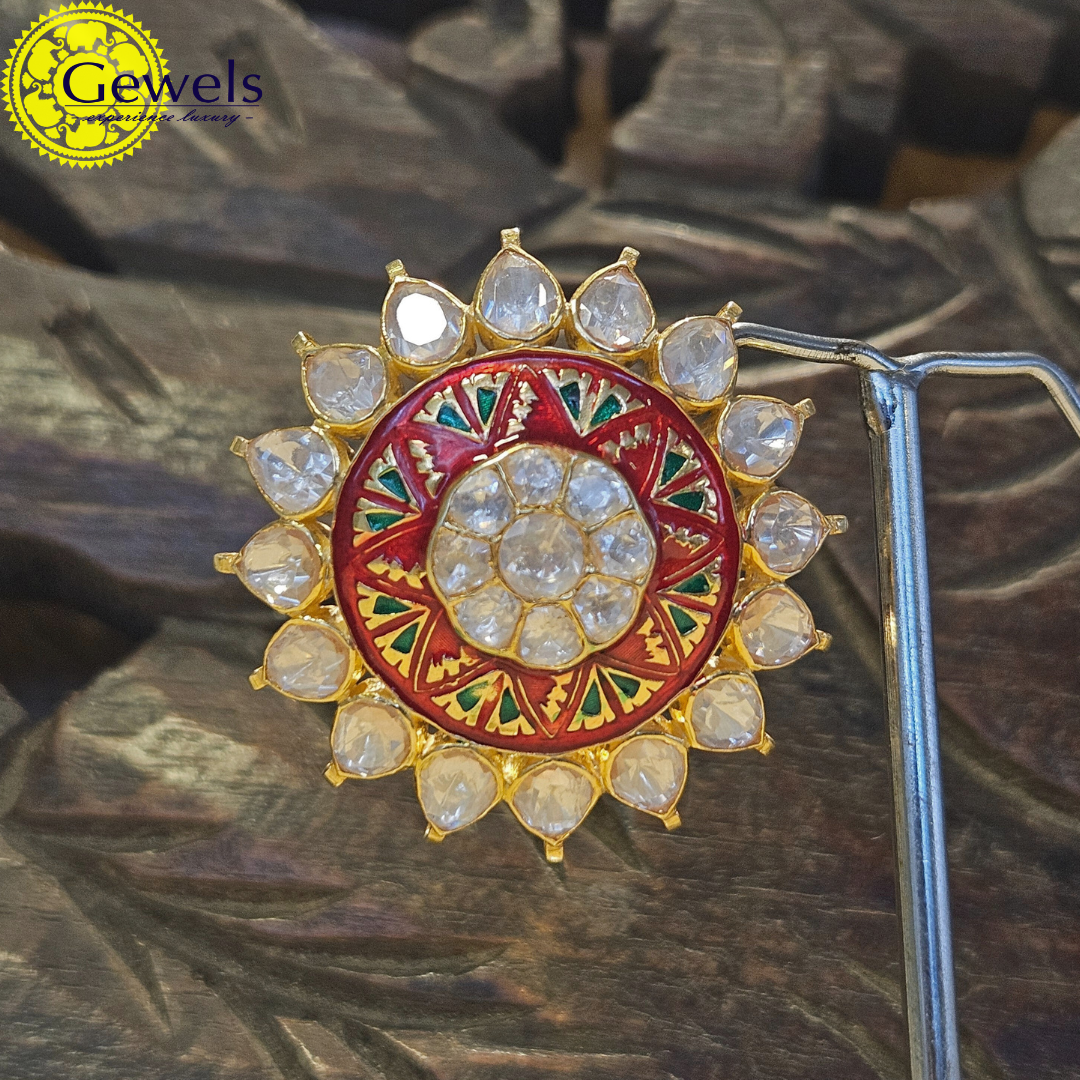 A captivating blend of radiant kundan stones and vibrant enamel, designed to evoke the brilliance of blooming stars.