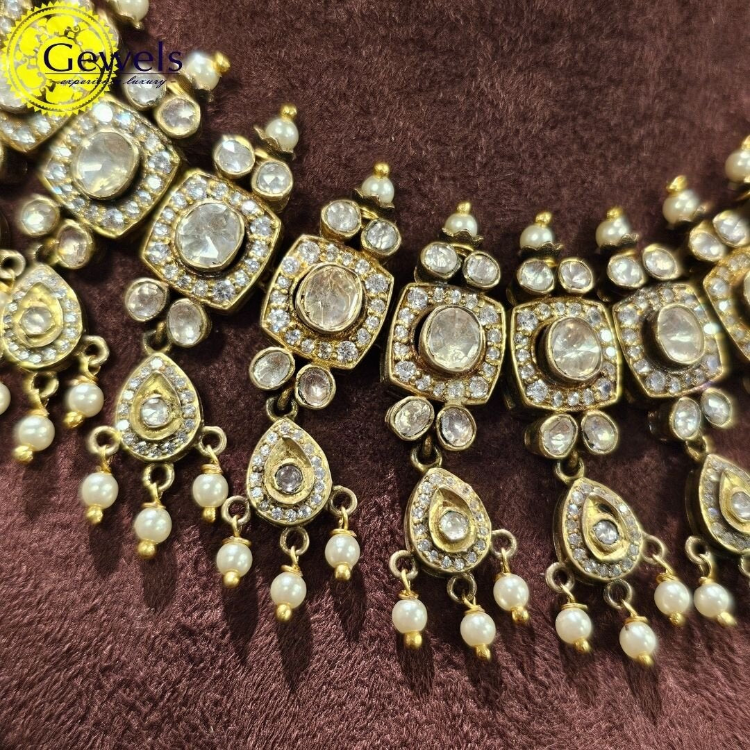 The Gewels Swirl Luxe Polki Necklace is a stunning blend of traditional charm and modern sophistication. Featuring shimmering Polki diamonds intricately arranged in a captivating swirl pattern, this necklace exudes luxury and elegance, making it the perfect accessory for any occasion.
