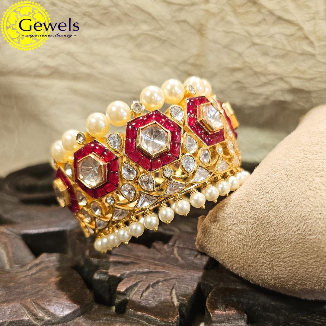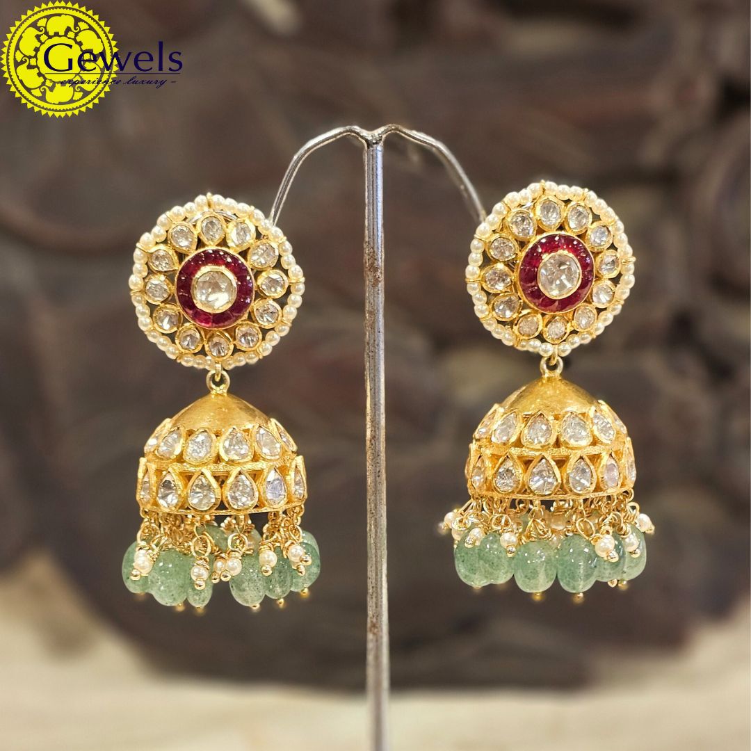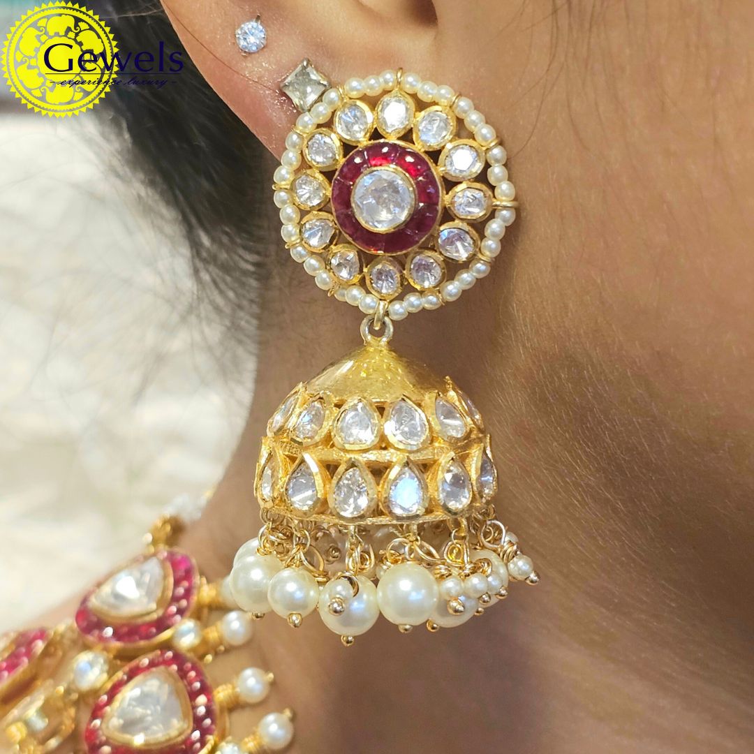 •Enhanced with Moissanite Polkis and semi precious Rubies.