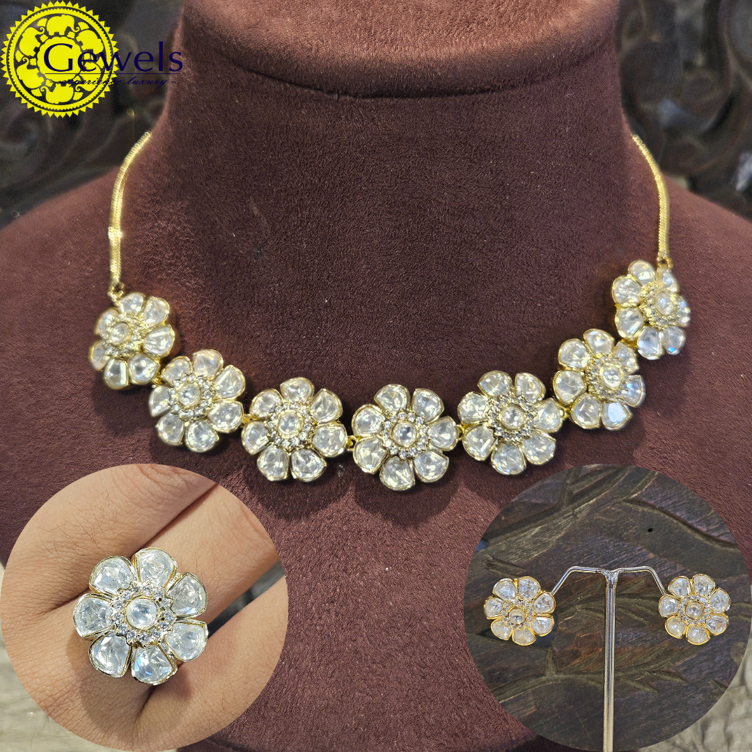 A symphony of gold and floral elegance, this set radiates timeless beauty with its intricate petals and shimmering allure.